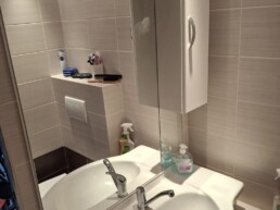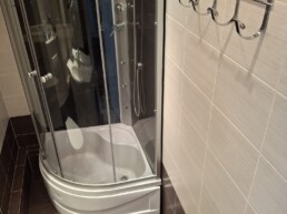 - Vybavení: Funkční sprchový kout, umyvadlová skříňka, zrcadlo s osvětlením.
