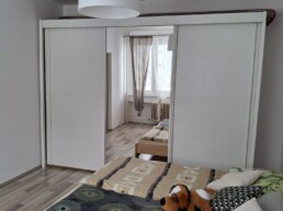 - Vybavení v ceně: Prostorná šatní skříň s posuvnými dveřmi a zrcadlem, dvoulůžková postel.
