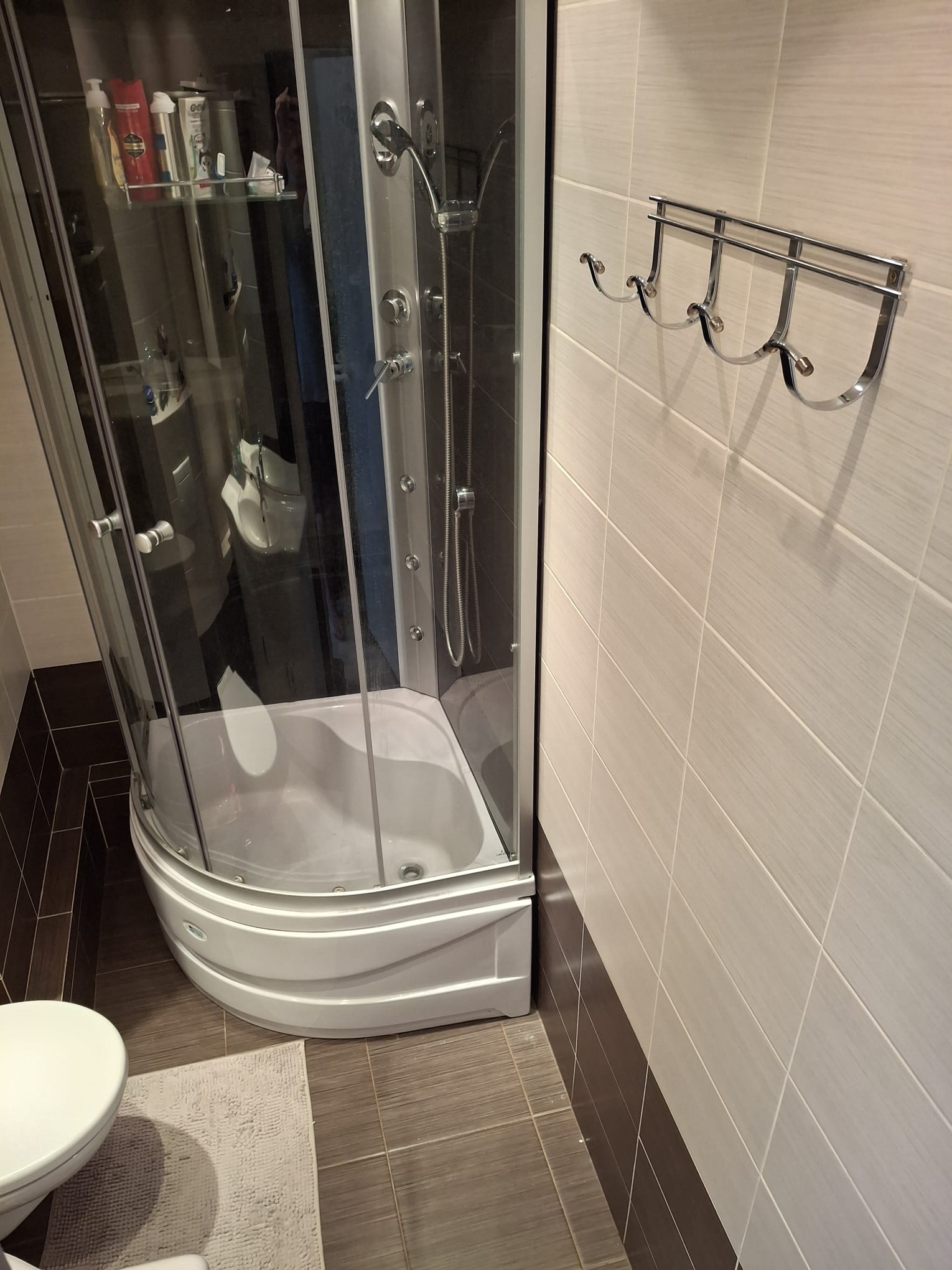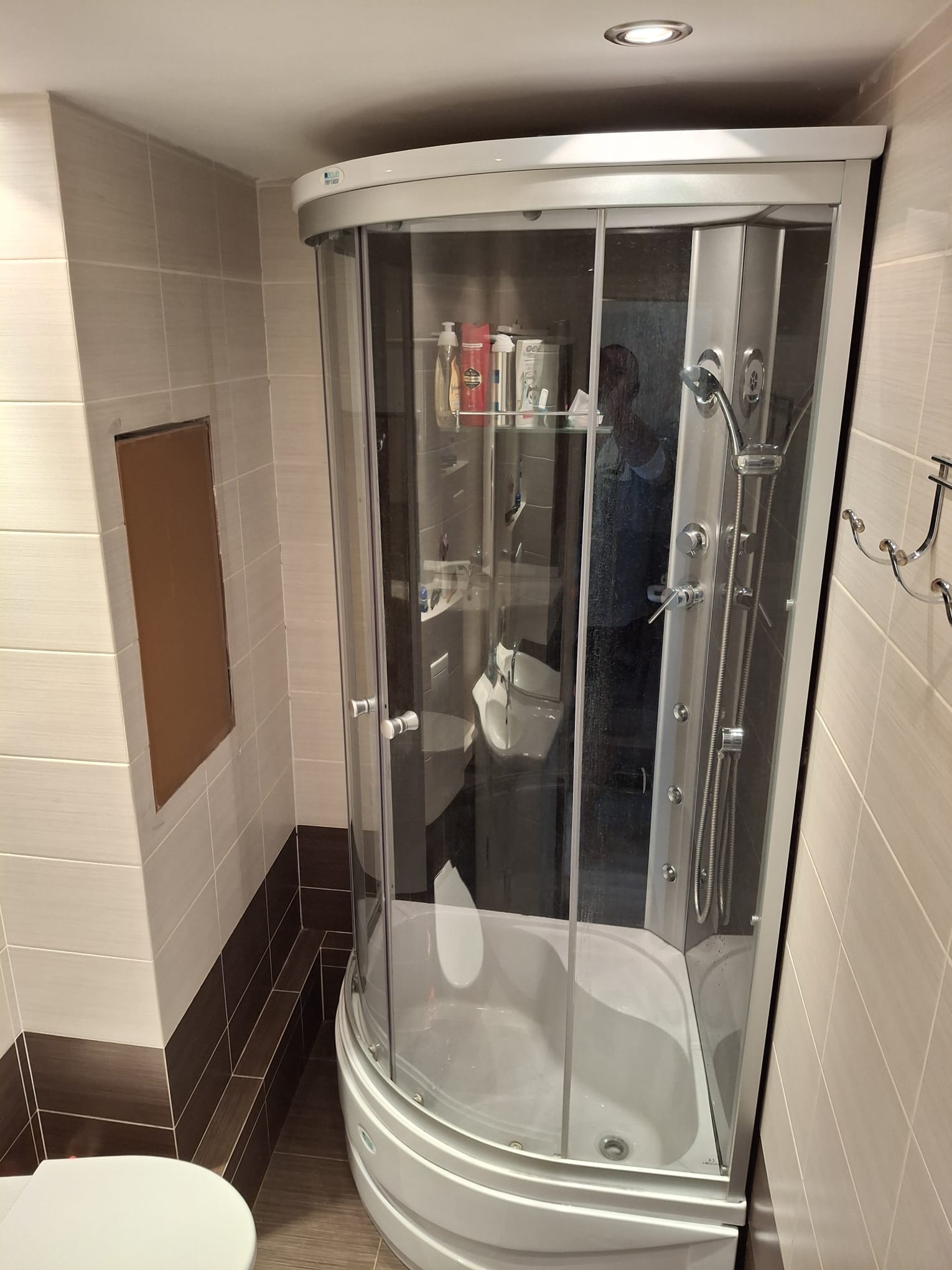 - Vybavení: Funkční sprchový kout, umyvadlová skříňka, zrcadlo s osvětlením.