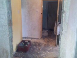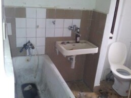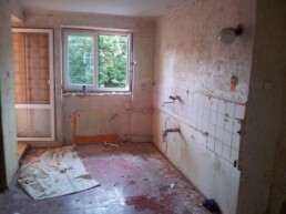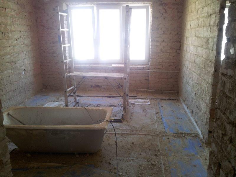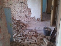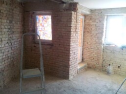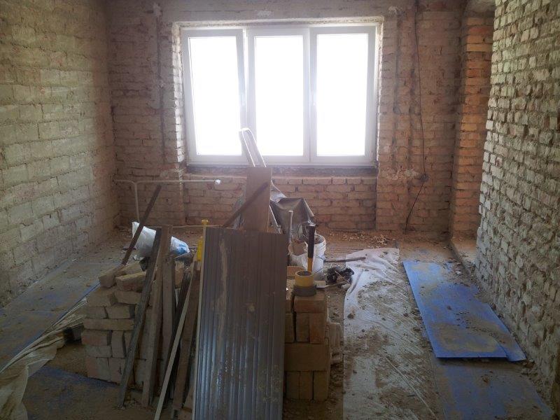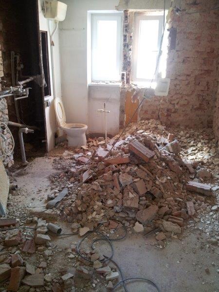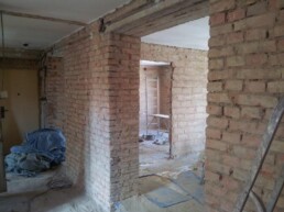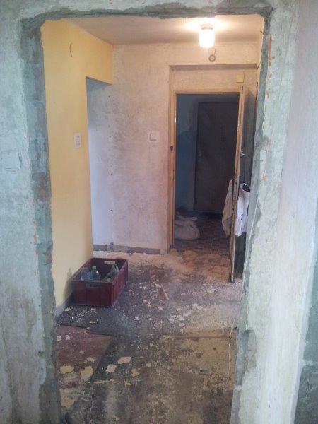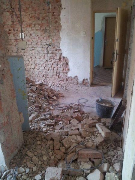 Před započetím vlastní rekonstrukce byl tedy celý byt vybourán takzvaně „ na cihlu“, odstraněny omítky, částečně i nevyhovující zdivo, betonové mazaniny a staré rozvody elektřiny vody a kanalizace. Na základě statického posudku (doloženo na Qark), byl v prostoru mezi kuchyní a spíží osazen nosný překlad s vybouráním zdiva a rozšířením kuchyně o jídelnu. Rovněž dispozice WC a koupelny byla pozměněna a sloučená do jednoho komfortního celku. Jedná se o byt ve 3. nadzemním podlaží bez výtahu. Už jen vybourání, vyčištění a příprava bytu k rekonstrukci byla náročná a nákladná. Přesun sutě i materiálů k rekonstrukci po schodech ručně.