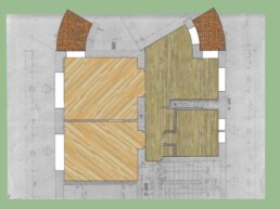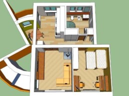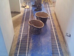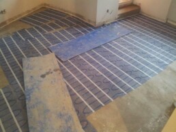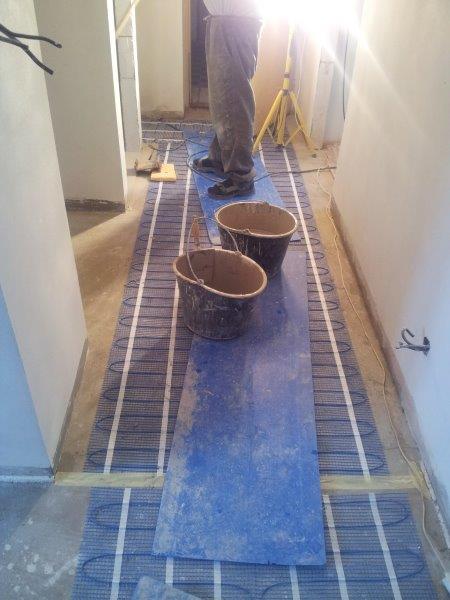 nové betonové mazaniny a vyrovnávky, slinutá dlažba v dekoru dřeva, podlahové elektrické topení tzv. „teplá dlažba“ ovládaná programovatelnými termostaty