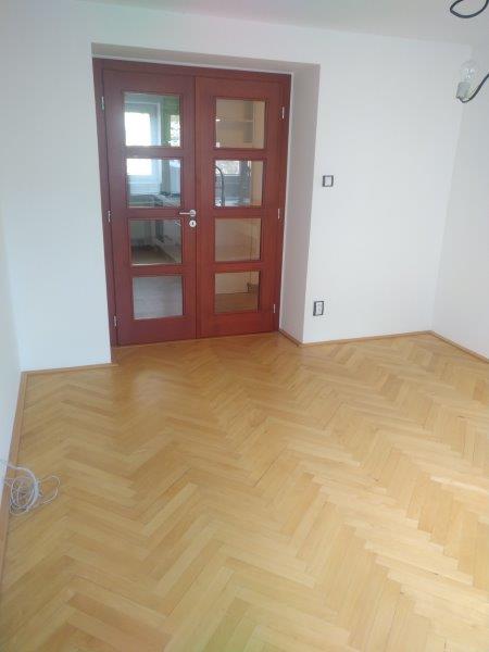 původní parkety, několikanásobný profesionální brus, tmelení, třívrstvý polyuretanový lak