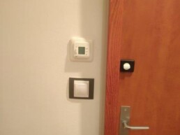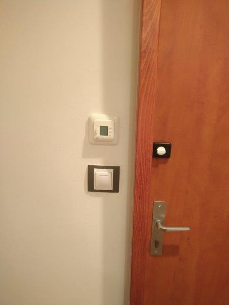 - Obývací pokoj se vstupem přes dvoukřídlé dveře, vyrobené na zakázku. Profesionálně renovované parkety. Vypínač osvětlení s vestavěným stmívačem. V pravém rohu proti vstupním dveřím vstup na balkon směrovaný do ulice. Vpravo u podlahy zásuvkový blok s TV, IT a datovou konektivitou. Wifi router připojen na síť CC internet.