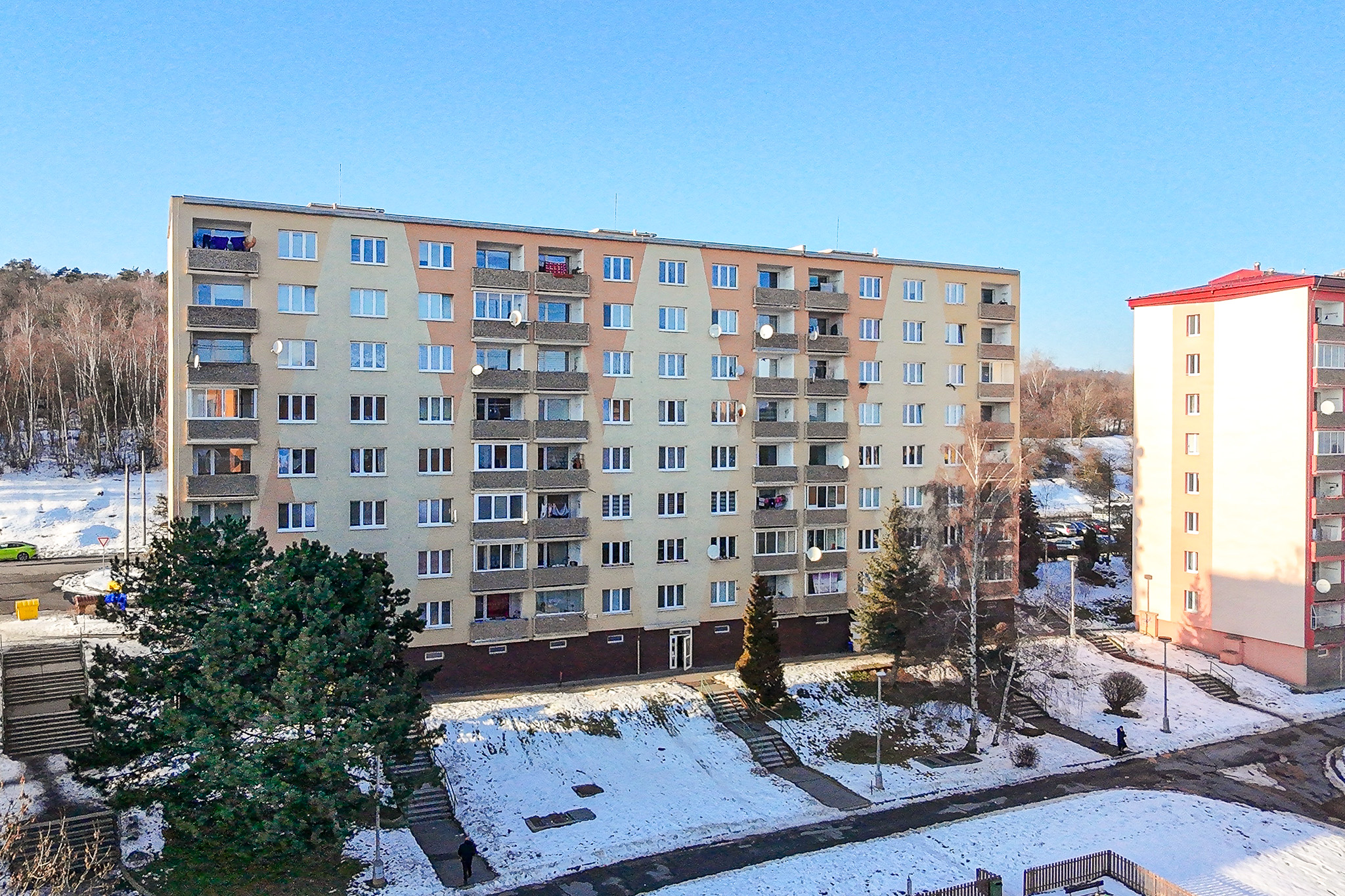 Jedná se o byt č. 8 ve třetím patře panelového domu s výtahem o velikosti 1+2 o celkové výměře 52,50m2, který se nachází v č. p. 5170 na ulici Zahradní v Chomutově.