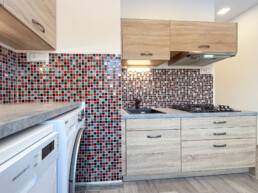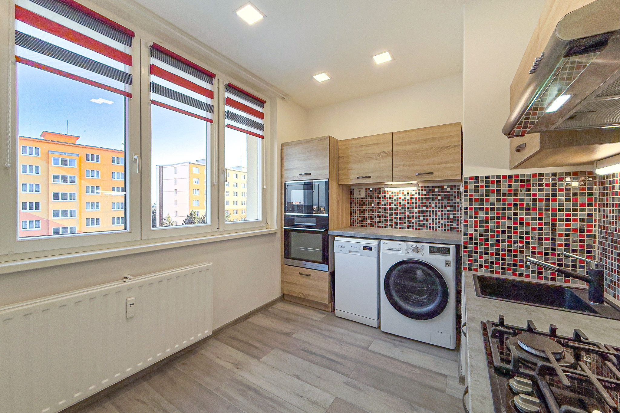 Vytápění bytu je centrální soustavou s rozvodem do deskových radiátorů. Taktéž i teplá voda je přiváděná centrální sestavou. V bytě jsou plastová okna s roletou „den a noc“. V bytě zůstává kuchyňská linka s plynovým vestavěným sporákem a digestoří, eklektická trouba je vestavěná do kuchyňské linky a součástí je i myčka na nádobí. Dále zůstávají dvě skříně a jedna komoda plus věšák. V celém bytě jsou snížené stropy s bodovým osvětlením. Koupelna se sprchovým koutem a umyvadlem. WC je samostatné v novém rekonstruovaném provedení. Rekonstrukce bytu proběhla v rozmezí 01/2022 do 04/2022. Podlaha je pokryta plovoucí podlahou, která je opatřena lištami.